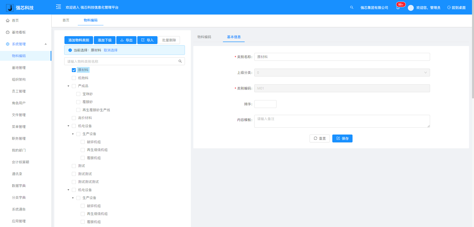系統(tǒng)設(shè)置:物料編碼、基地管理、組織架構(gòu)、員工管理、角色用戶、菜單管理、職務(wù)管理、會計核算期、授權(quán)設(shè)置